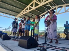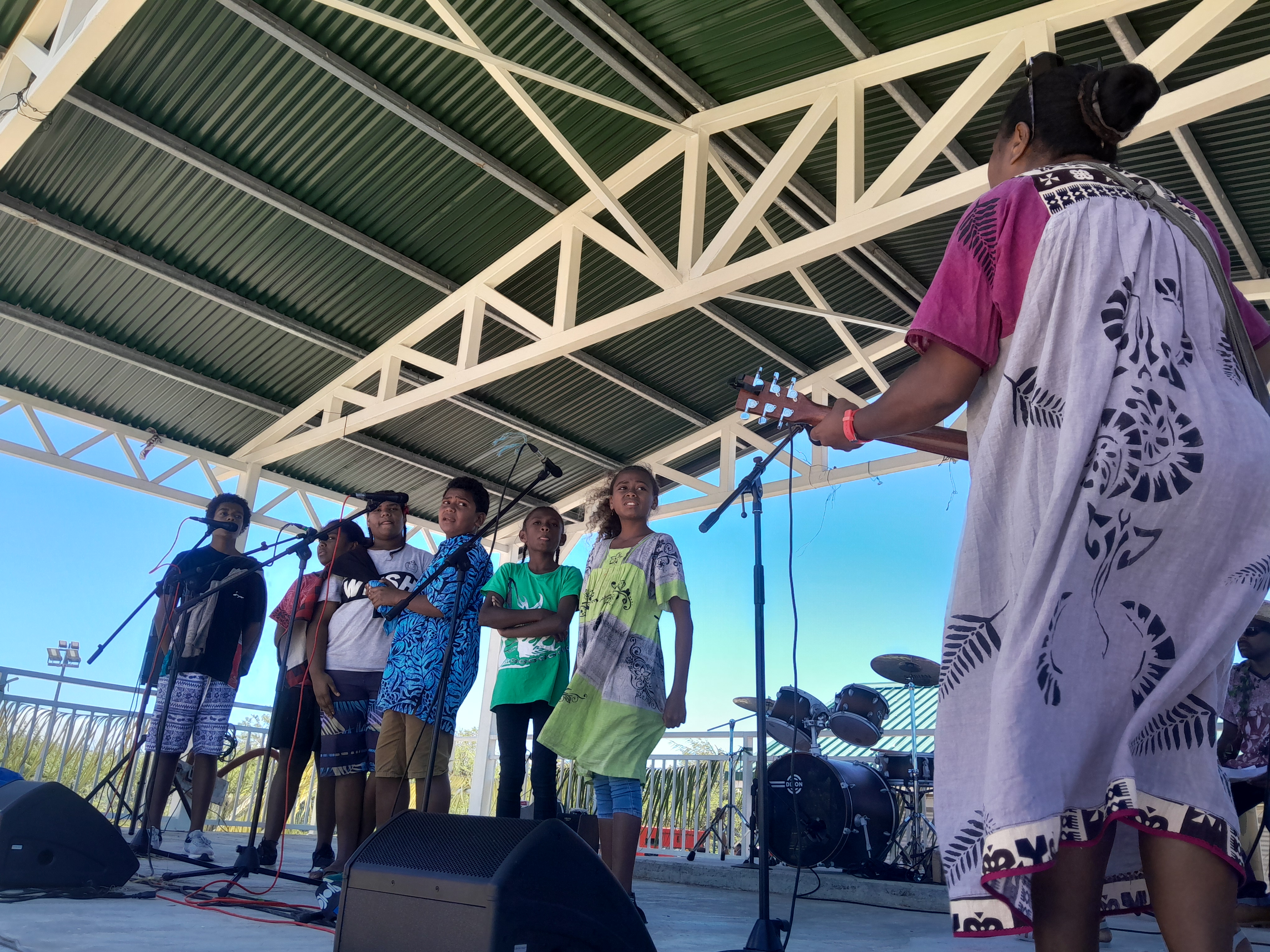 Ainsi, les élèves de la chorale du collège, encadrés par Angela Boucko, professeure de musique, ont participé à la journée en entonnant un chant en langue iaai et faga inventé pour l’occasion. « Nous avons pris l’air d’une chanson qu’ils connaissaient déjà puis Aïzick Adjouhgniope, professeur de iaai, a choisi avec eux des mots dans nos deux langues d’Ouvéa, avec pour sujet l’unité et la défense de notre culture linguistique », explique Angela Boucko. Avant d’ajouter : « Les élèves étaient un peu stressés, car ils n’ont pas encore beaucoup chanté en public, mais ils ont bien assuré et étaient heureux de leur participation. »