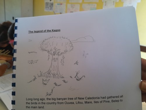 Le travail réalisé a été imprimé et relié par Mme Wadjigueth. Il est possible, pour les élèves comme pour les familles, de venir consulter ces textes au CDI du collège, pour (re)découvrir quelques contes calédoniens.. dans la langue de Shakespeare.