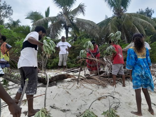 À Ouvéa, le projet est piloté par le Syndicat Initiative Iaai-Ouvéa avec de nombreux partenaires, dont Ouvéa Anim en charge de l’animation pédagogique. En cette fin d’année scolaire, l’équipe est passée dans les établissements de l’île, pour présenter Kiwa PEBACC+ et expliquer comment confectionner des barrières végétales en palmes de cocotiers afin de ralentir l’érosion.